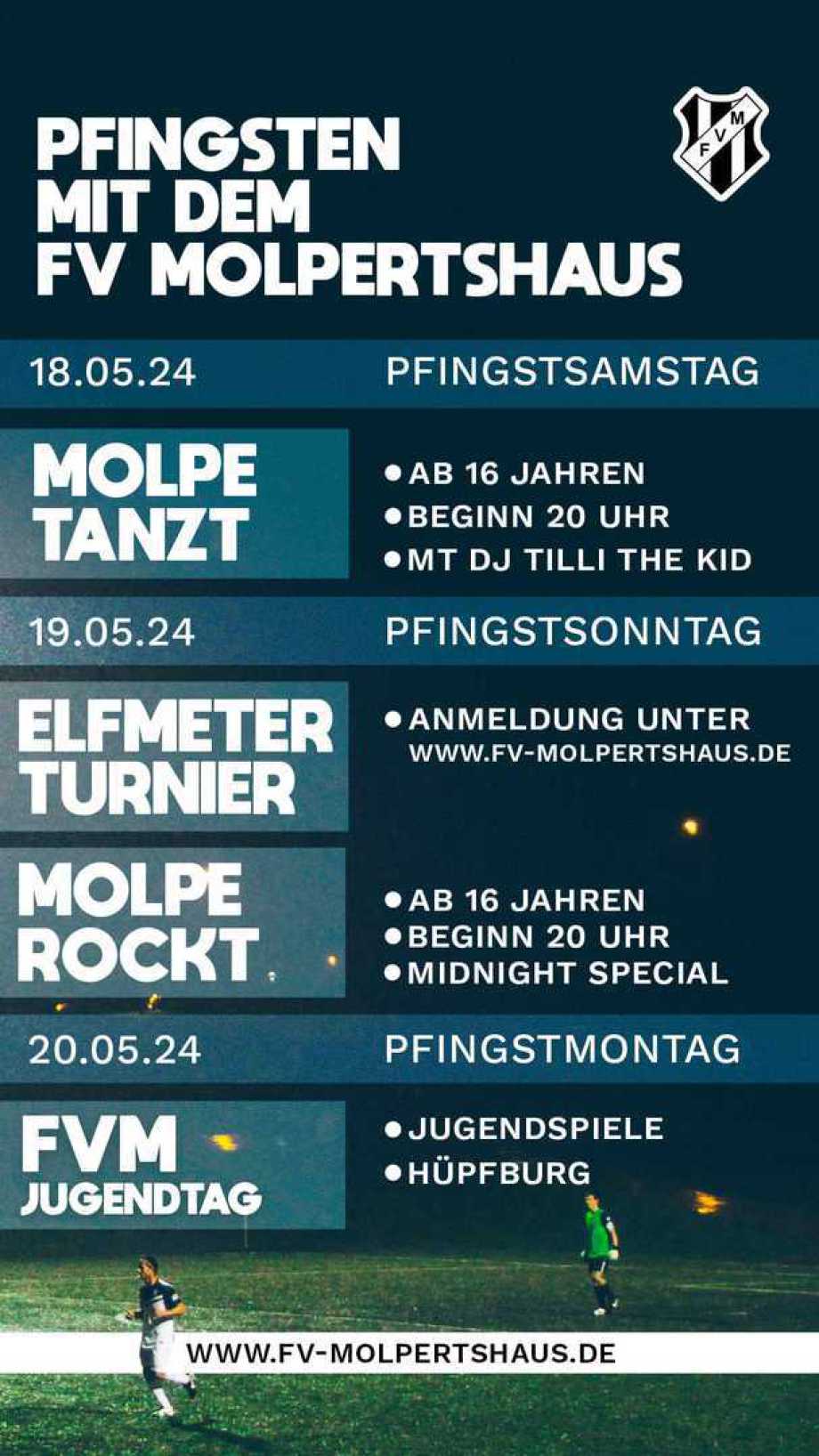 Der FV Molpertshaus veranstaltet an Pfingsten wieder sein traditionelles Pfingstfest. Die Gäste erwartet an allen Tagen ein interessantes und vielseitiges