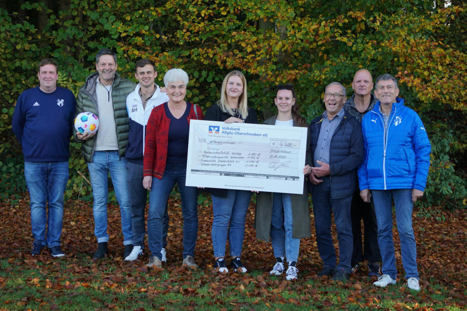 Beim Sonntagsspiel am 27. Oktober nahm Dieter Russ in der Halbzeitpause als Vertreter des FV Molpertshaus vor großer Kulisse die große Scheckübergabe vor. Neben der Suppenküche Klosterstüble, Bad Waldsee erhielten auch weitere Einrichtungen den Spendenbetrag in Höhe von 1100 Euro. Diese sind: die Nachbarschaftshilfe Wolfegg, die Schiedsrichtergruppe Ravensburg sowie das Pflegewohnquartier Niederrieden. Auf die letztgenannte Einrichtung in Niederrieden wurden die Molpertshauser Fußballer durch die Mutter eines Patienten aufmerksam. Mit großer Freude und Dank nahmen die Begünstigten den Spendenscheck entgegen.